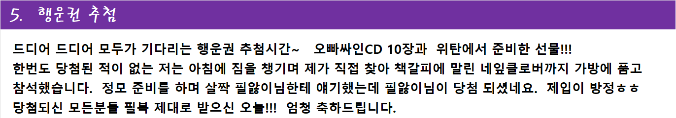 아...행운권 추첨에 오빠 친필 사인 CD 받게 되어 너무 좋았어요~