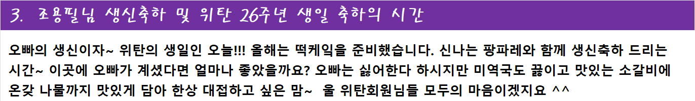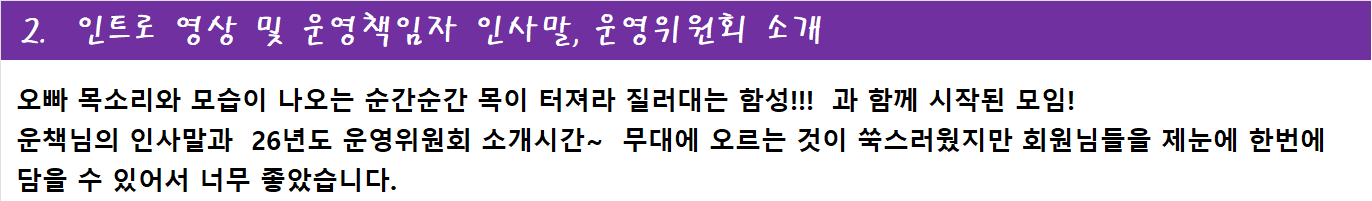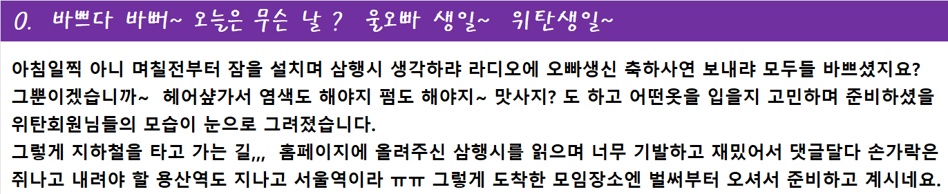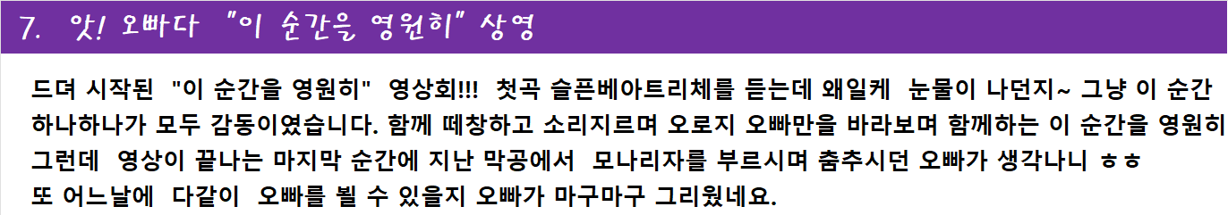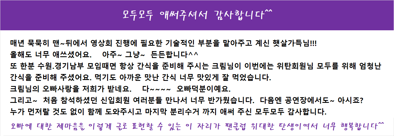 이번 팬클럽 정모를 아주 멋지게 기록하고 생생하게 전해주신 홍보담당 여름향기님 덕분에
