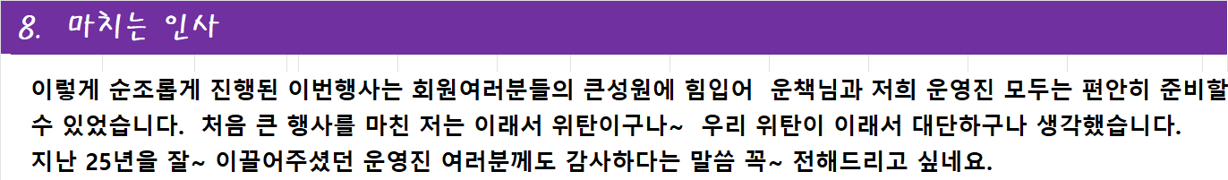 햇살가득님과 그동안 많은 운영진 여러분들이 25년동안 잘~ 이끌어 주셔서~ 단단한 위탄입니다.