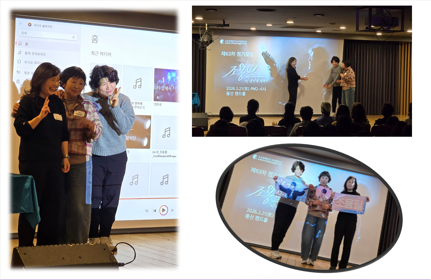 "청춘에서 오늘까지 늘 함께 할 조용필" 플랭카드 뒤~ 예쁜처자들이 서울방회원님들이시죠~